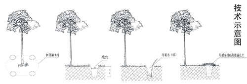 挖穴時(shí)要盡量避開樹的大根,以免傷根;高溫干旱天氣灌水以清晨或傍晚效果最好;一般情況下,每3~7天往穴內(nèi)灌水一次,以實(shí)際氣候狀況而定,但即使干旱時(shí)期也無需天天灌水。