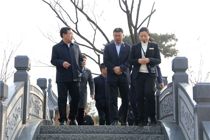 3月12日上午,湖南省韶山市市長唐杰、韶山市副市長何浪一行5人蒞臨韓城國家文史公園考察,韓城市委常委、常務(wù)副市長張喜,市委常委、市政府黨組成員、副市長張新莊,副市長王志鵬,市政府秘書長賈耀斌,浙江人文園林股份有限公司副總裁洪利民陪同。
