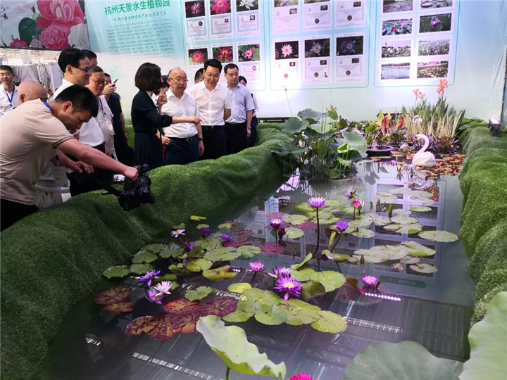 省政協副主席周國輝,省林業廳廳長林云舉,溫州市市長姚高員等一行參觀了我司展區,聽取了荷花、睡蓮等水生植物在園林景觀、“五水共治”、濕地生態修復方面的應用介紹,當了解到我司在荷花、睡蓮新品種培育方面,尤其應用轉基因技術,選育耐寒型熱帶睡蓮成果時,周國輝副主席等給予了高度評價。當介紹到我司2017年登錄的睡蓮新品種“人文溫州”時,溫州市市長、市人大主任和市政協主席等領導表現出了極大的驚喜。
