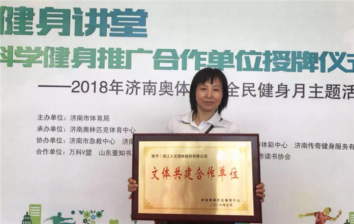 人文園林素來重視健身和閱讀,平時在各項目部開展陽光晨跑活動、世界讀書日為地方小學捐贈大量圖書等等,既關注公司員工的成長,也積極投身社會公益事業。“文體共建合作單位”關系建立后,人文園林會進一步深化與濟南奧體中心的合作,讓當地民眾收獲更多的健康和快樂。