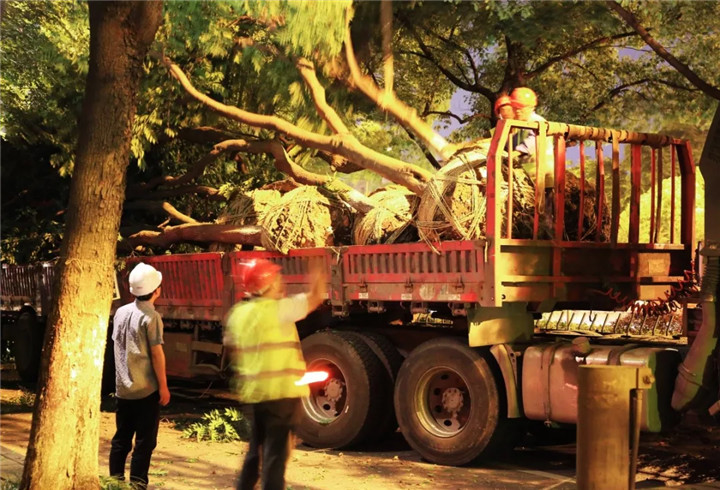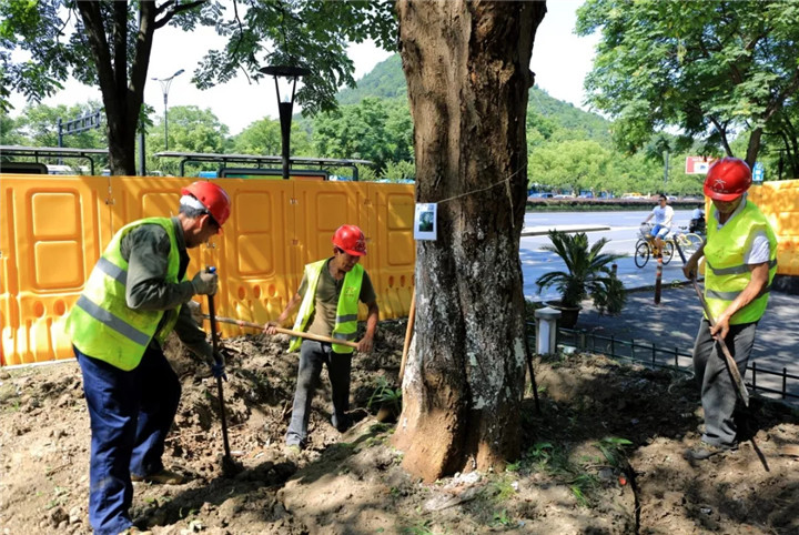 晝夜奮戰搶工期,風雨無阻保節點,這是環城北路-天目山路(中河立交-古翠路)西湖區段苗木遷移工程如火如荼進行中的情景。工程由杭州市城市建設投資集團有限公司建設,浙江人文園林股份有限公司施工。