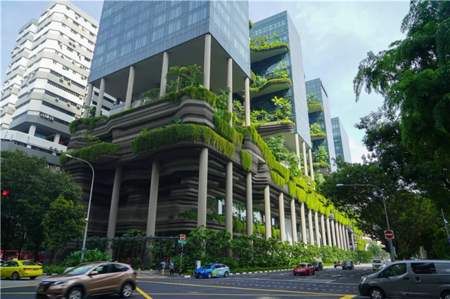 新加坡的綠化是立體的。高大的喬木、低矮的灌木,如茵的草地,相互輝映;樓房的四面綠化,立交橋和高架橋的垂直綠化,相得益彰:這一切營造出了一個美好的綠色世界。新加坡綠化的成功應得益于他們多年來所一貫秉承的綠化理念。道路兩旁樹木成蔭,街頭到處是小花園、小草坪,花香草綠,空氣清新,因此被世界公認為“花園城市國家”。