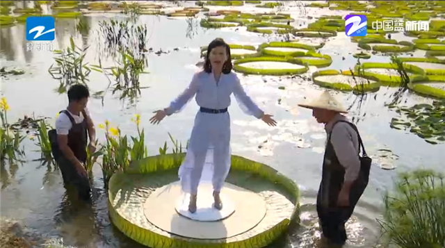 10月18日晚,浙江電視臺公共·新聞頻道《田園好手藝》節目向觀眾們科普了這種神奇的水生植物。節目在浙江人文園林股份有限公司研究基地 “文浦花園”維多利亞王蓮園拍攝,人文園林副總裁、研究院院長、杭州市水生植物學會理事長陳煜初給大家講解了王蓮的相關知識。