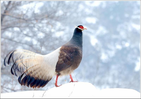 褐馬雞是馬雞屬中的一個種,是中國特產珍稀鳥類,被列為國家一級保護動物。身高約60厘米,體長1米~1.2米,體重5公斤,全身呈濃褐色,頭和頸為灰黑色,頭頂有似冠狀的絨黑短羽,臉和兩頰裸露無羽,呈艷紅色,尾巴高高豎起。翅短,不善飛行,兩腿粗壯,善于奔跑。 被譽為“國鳥”的它,既健碩有力,又美麗嬌媚,不輸丹頂鶴。它是我國特有、世界瀕危級珍禽,中國十大珍稀動物之一。中國鳥類學會把褐馬雞作為會標。它在國際上與大熊貓齊名,亦被世界雉類協會放在其會徽上。 褐馬雞以英勇善戰而著稱,一旦遇敵,絕不后退,定會與敵人“決一死戰”,表現出一種寧死不屈、視死如歸的精神。自古以來,人們就將它看作勇敢的象征,以其羽做重要的裝飾。到了清代,以褐馬雞尾羽制成的“褐冠”,是激勵將士打勝仗的最高賞賜。特別是清代官員所戴的“頂戴蘭翎、花翎”,都是用褐馬雞的羽毛制成。