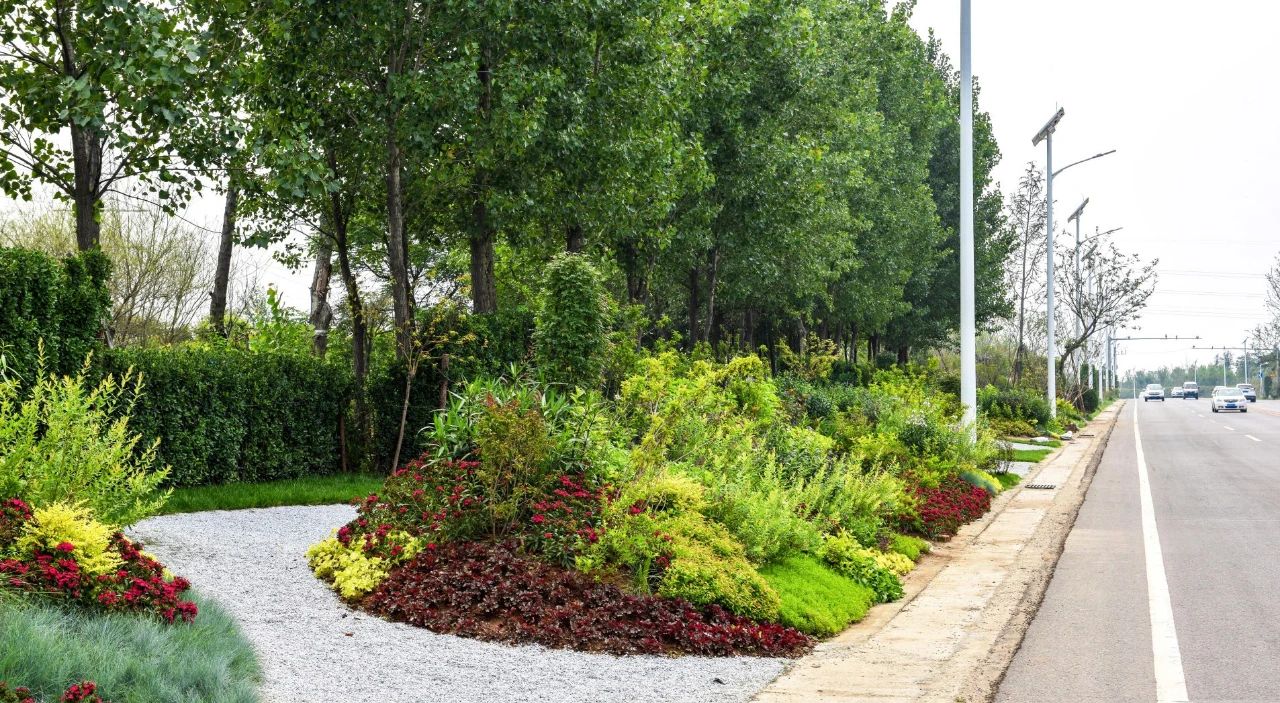 白鹿原生態景觀路示范工程由人文園林承擔設計、施工。項目位于西安市灞橋區狄寨鎮東月路,以植物景觀為主,充分發揮鄉土樹種美化環境、改善城市生態系統的作用,進一步提升灞橋區文化底蘊,構建具有灞橋區特色的生態綠地景觀。主要景觀節點有東月園、滑雪場入口、彩霞谷和夏塘園。通過為四季花景創造靈動變化的前景、中景、背景,來營造春花浪漫、夏蔭濃郁、秋色絢麗、冬季松柏蒼勁的道路景觀。