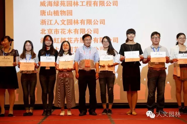 浙江大學夏宜平教授(中)為花卉景觀競賽創新獎頒獎
