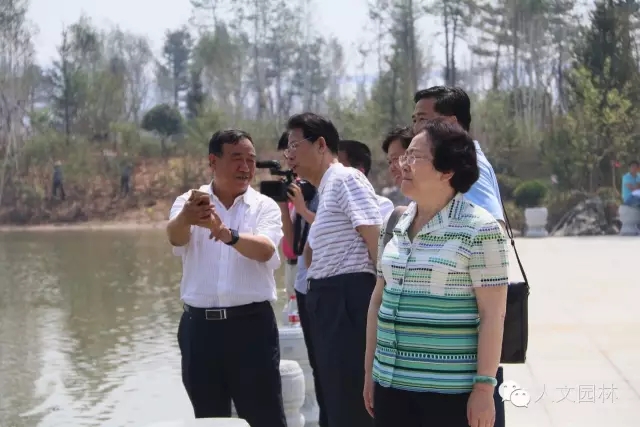 陜西省副省長張道宏(左二)到國家文史公園視察,韓城市市委書記、市人大常委會主任李智遠(左一)和韓城市市長褚錦鋒(右二),以及浙江人文園林有限公司副總經理洪利民(右一)陪同。李智遠書記為張道宏副省長詳細介紹了澽水河改造方案、韓城市污水處理計劃和文史公園的設計方案、施工進度,得到了張道宏副省長認可。