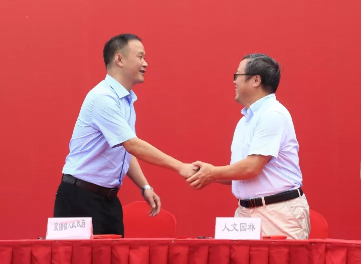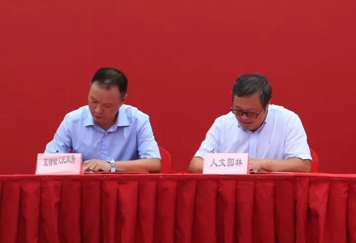 陳煜初副總裁代表浙江人文園林股份有限公司與雙浦鎮(zhèn)人民政府簽署了項目合作協(xié)議。杭州市委市政府、西湖區(qū)區(qū)委區(qū)政府各級領(lǐng)導出席了會議,簽約單位和建設(shè)單位代表共500余人參加了今天的活動。