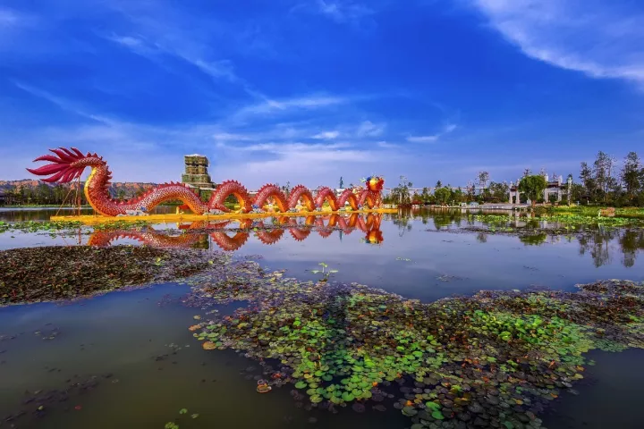 國家文史公園充分利用其原有大面積低洼濕地,挖湖堆山,為公園形成基本的山水骨架空間。根據場地的歷史特征,即司馬遷時代漢武帝建章宮“一池三山”的布局,來構成國家文史公園的空間骨架,并吸取西湖風景園林以及中國其他傳統優秀園林的造園思想和布局特點中的精粹,來營造“北雄南秀”具有歷史文化內涵的山水園林。